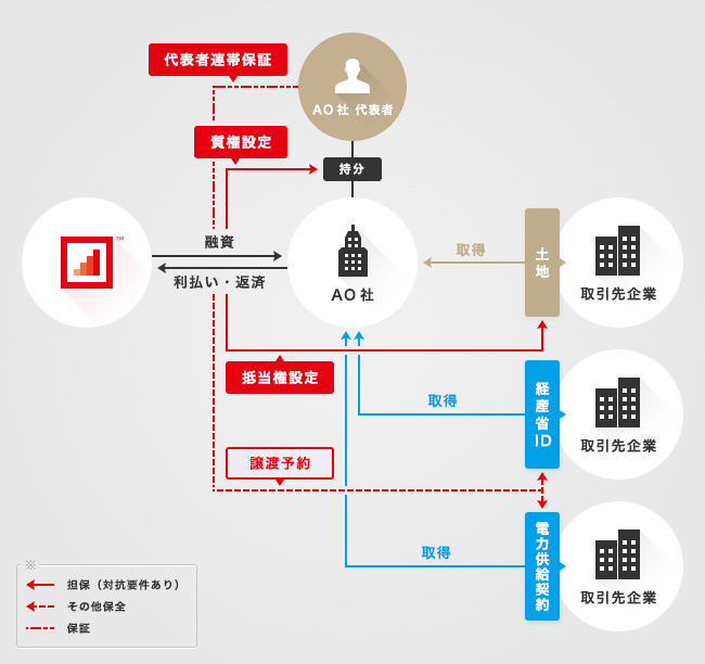 当ファンドでは、太陽光発電事業を運営する合同会社であるAO社に対して営業者が新たに融資を行うことで生じる債権を主要な融資先に対する融資債権として取得します。